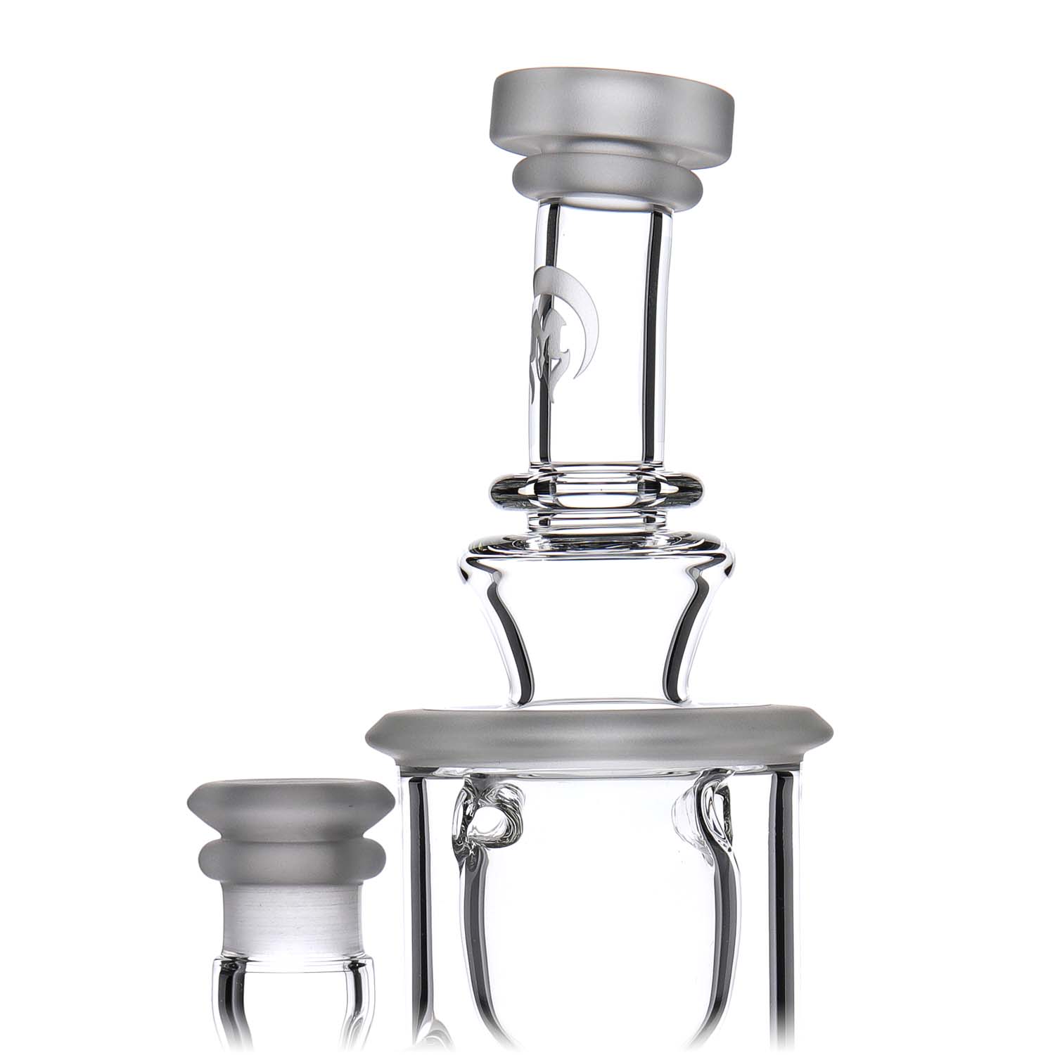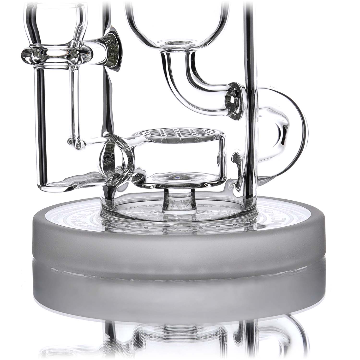 Inspired by the work of mathematician Felix Klein, our Klein model is a twist on our Torus, featuring a “macaroni” section that transports recycling water through the drain, outside the can, and then back inside to refill the perc chamber. The Klein has a single seed or flower of life perc system and comes in three sizes: Micro, Mini, and Full Size.