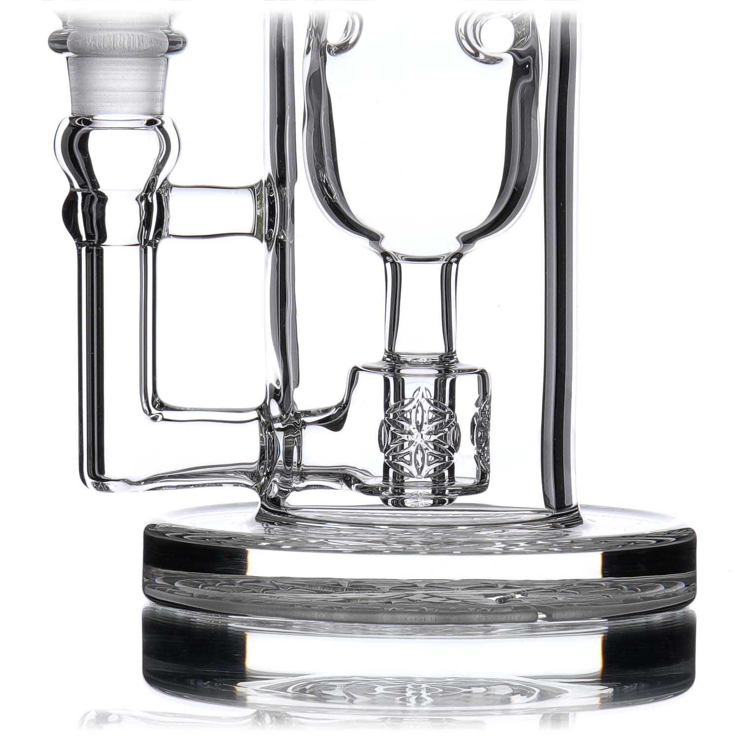 Inspired by the movements of Earth and space, the Torus internal recycler creates function found in mathematics. The acorn-shaped chamber facilitates a water cycle within the piece. The Torus has a script or multiple seed of life perc system and comes in four sizes: Micro, Mini, Full Size, and XL.