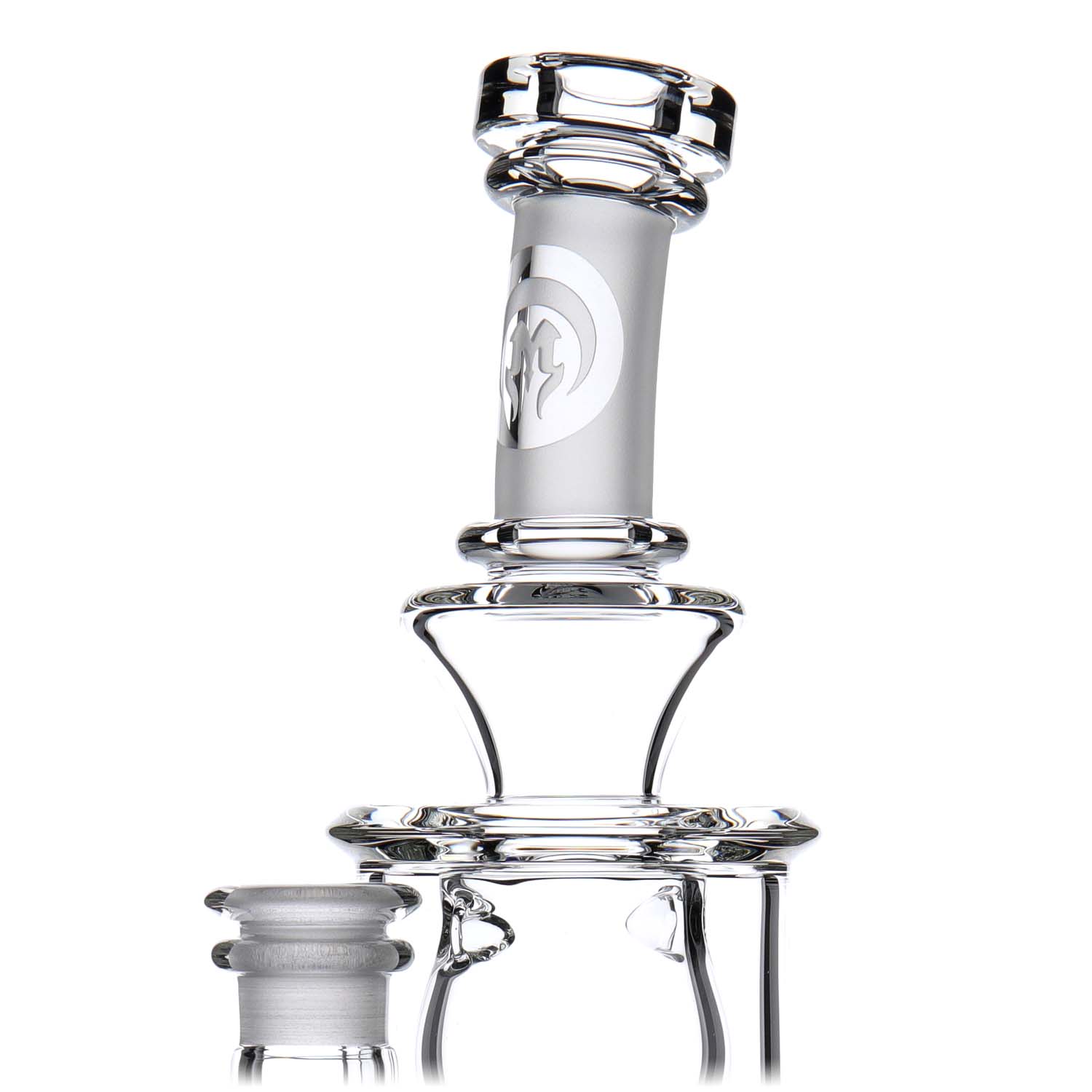 The walls of the SFT act as a vacuum chamber incorporating a series of fab holes that enhance water diffusion. The acorn-shaped chamber facilitates a water recycle within the piece. The SFT has a multiple seed of life perc system and comes in two sizes: Mini and Full Size.