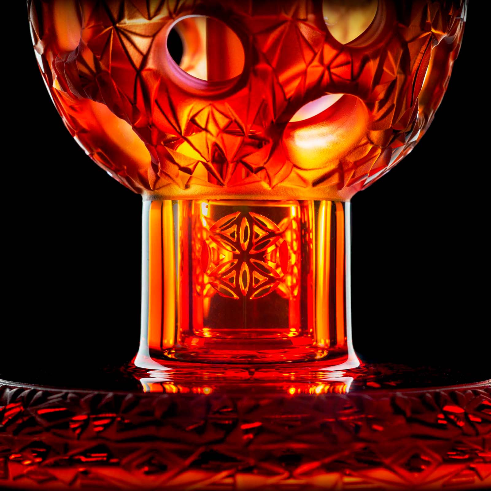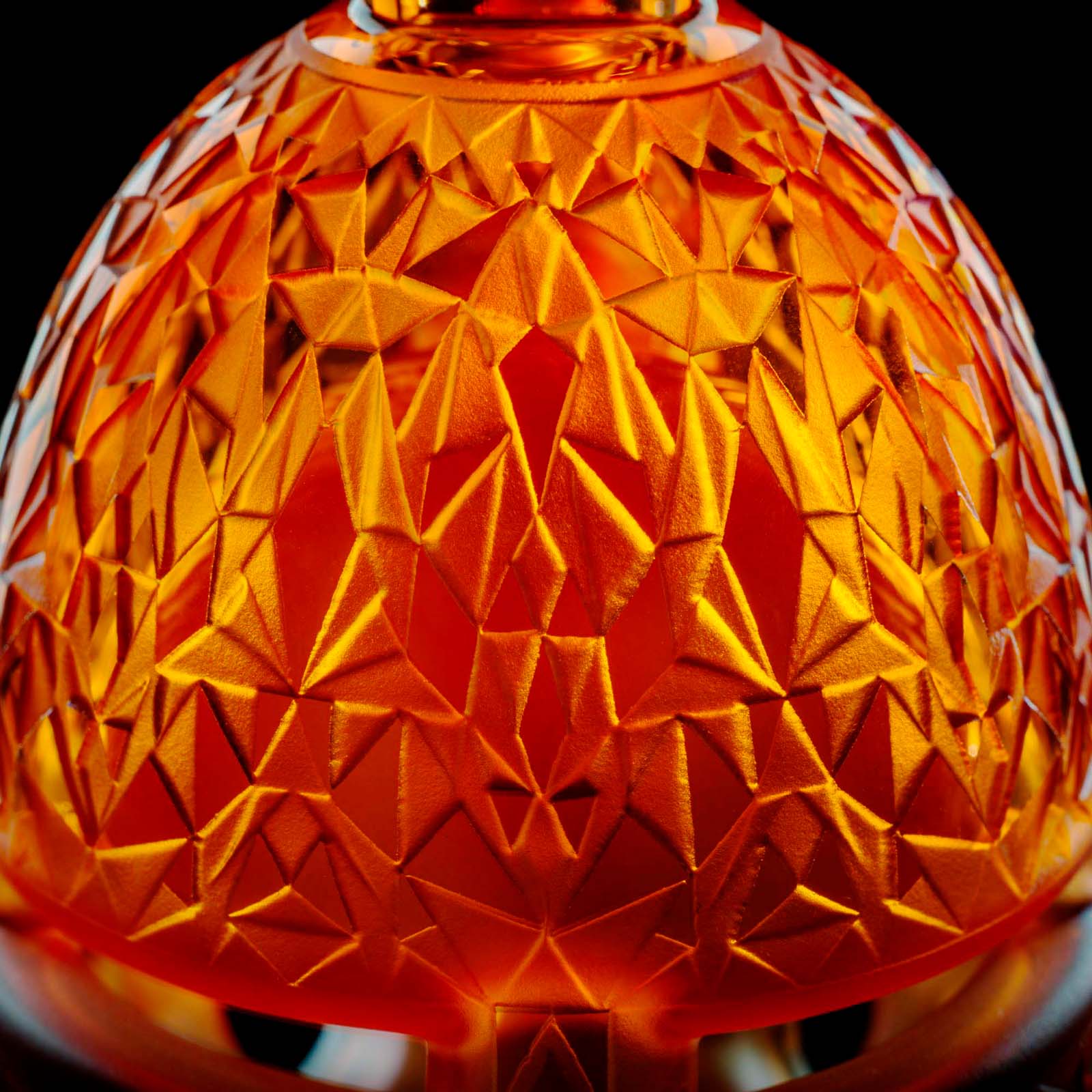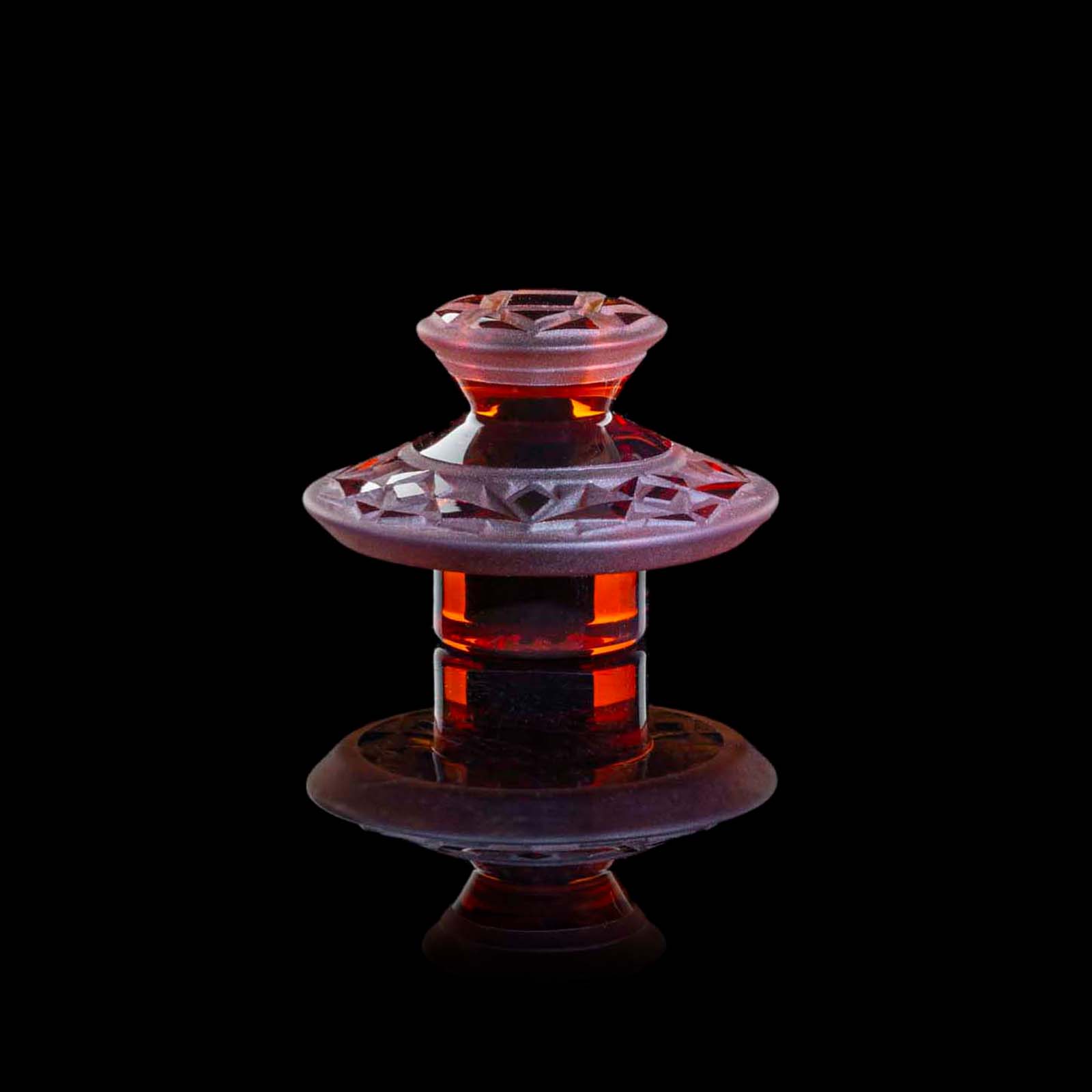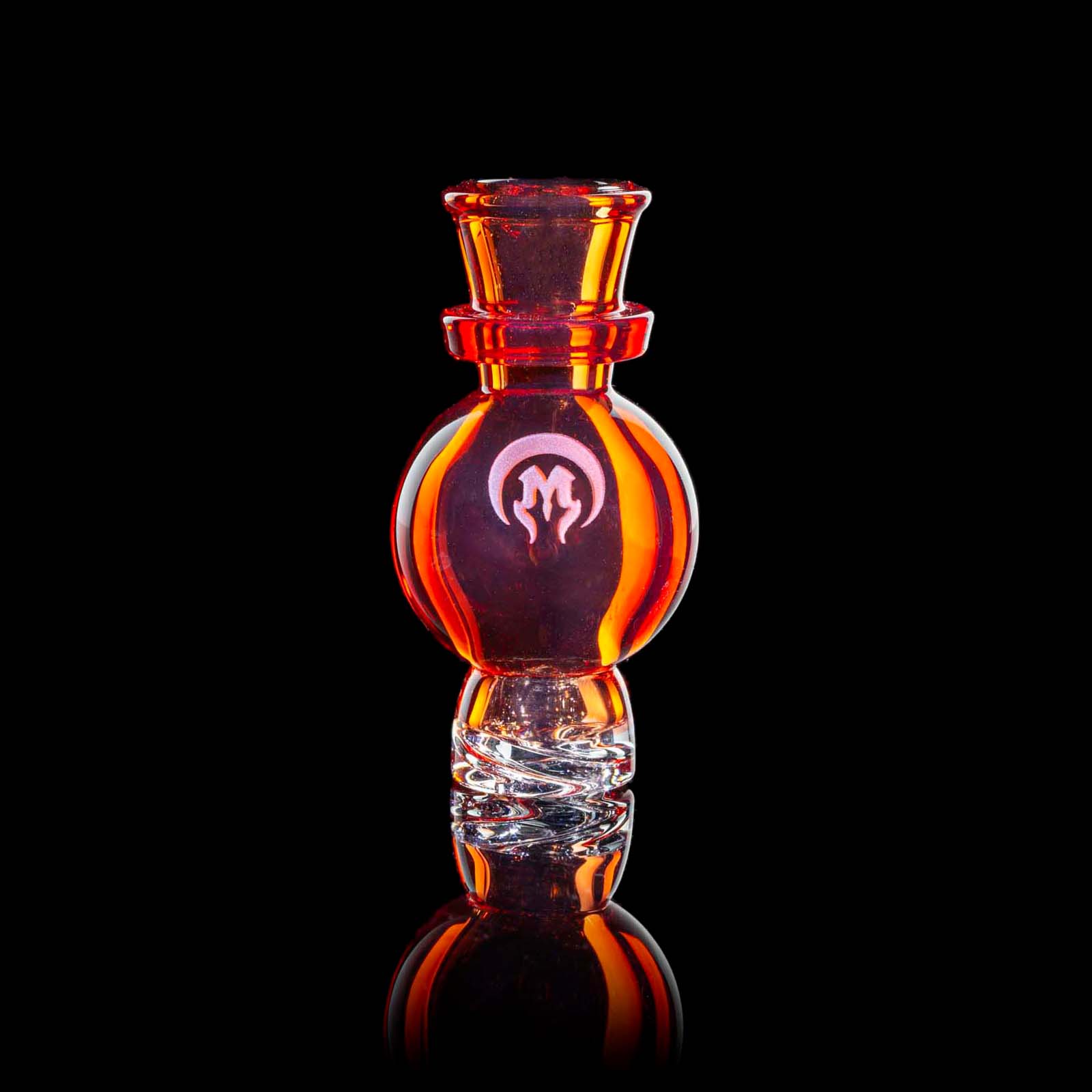 The Sunstone Mini Fab Egg showcases masterful craftsmanship with intricately carved geometric patterns adorning the can, mouthpiece, and base. The carving combined with the vibrant Sunstone color from Molten Aura Labs makes this Fab Egg next level.